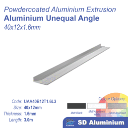 Aluminium 40 x 12 x 1.6 mm Unequal Angle 3M