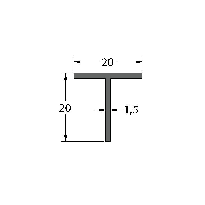 Aluminium 20 x 20 x 1.5mm T Bar 2.98M