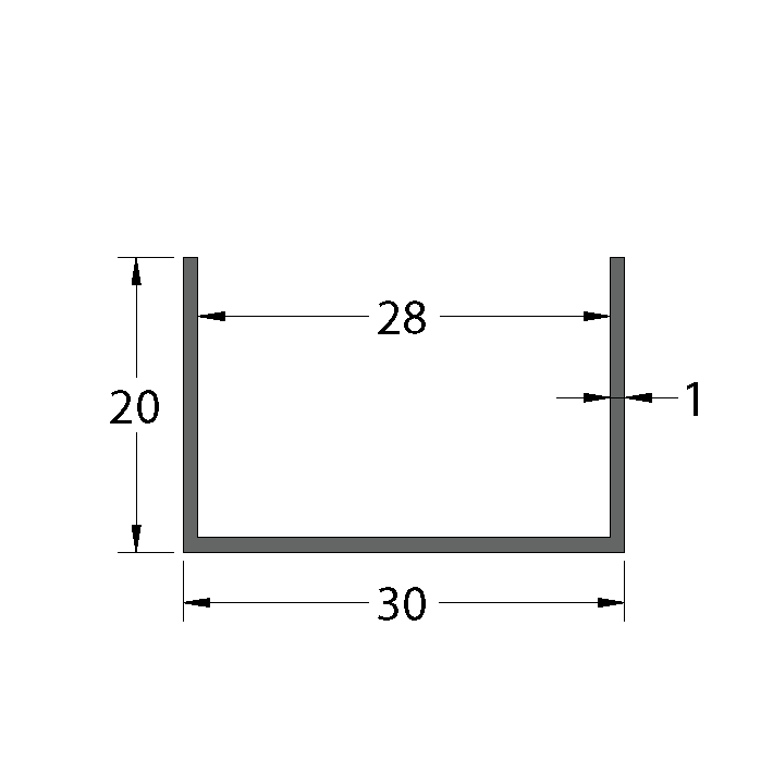 Aluminium 30 x 20 x 1mm U Channel 5.95M Anodized Black