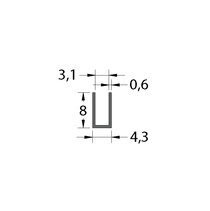 Aluminium 4.3 x 8 x 0.6mm U Channel 5.95M