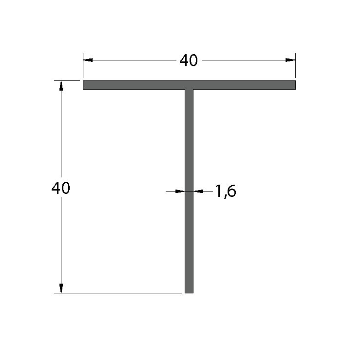 Aluminium 40 x 40 x 1.6mm T Bar 5.95M