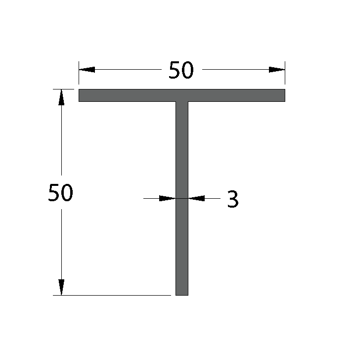 Aluminium 50 x 50 x 3mm T Bar 5.95M