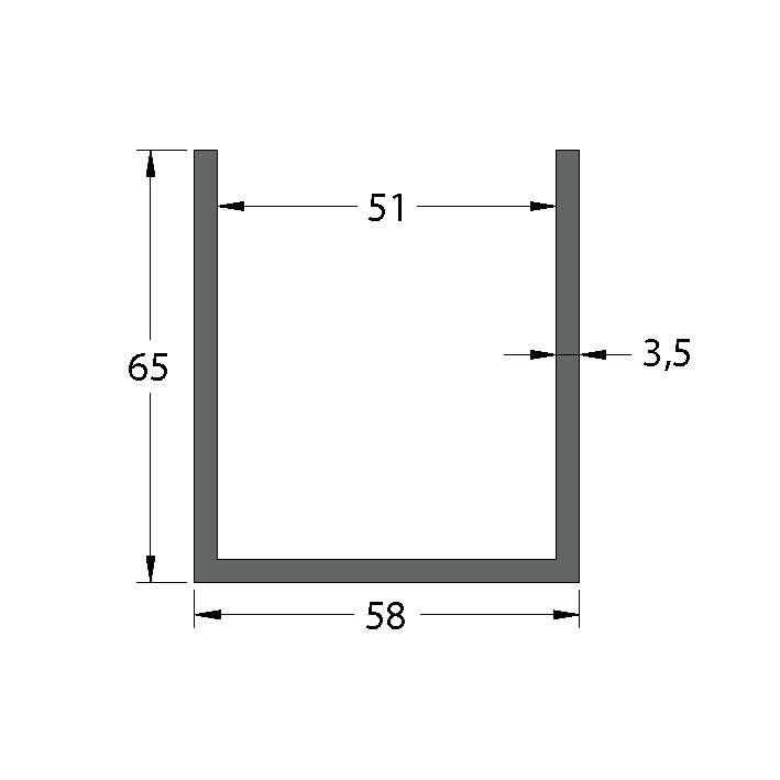 Aluminium 58 x 65 x 3.5mm U Channel 2.98M