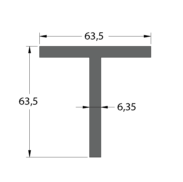 Aluminium 63.5 x 63.5 x 6.35mm T Bar 5.95M