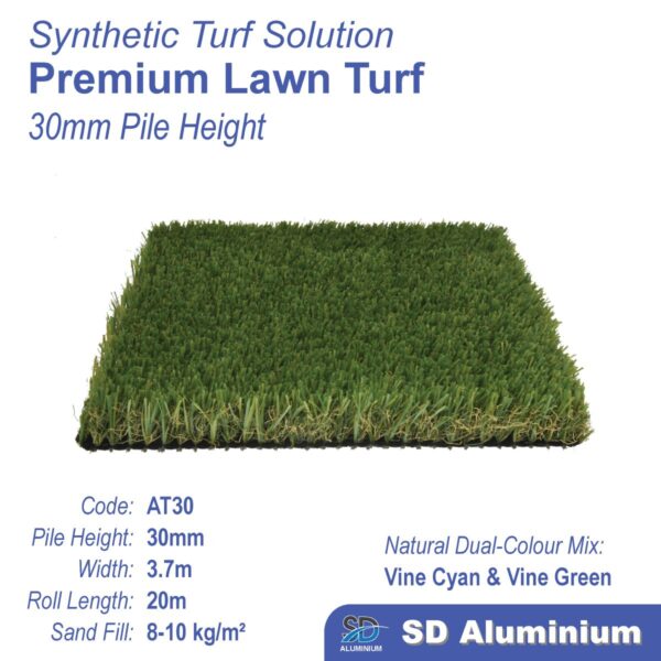 Premium Lawn Turf Width 3.7M x 20M 30mm Height